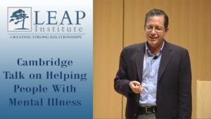 Whether you are a caregiver, mental health professional, or family member of someone with serious mental illness, this collection of video and audio provides valuable tools and knowledge to help you navigate and support those in need. This page includes lectures, keynote speeches, interviews, and podcasts, all with practical techniques and strategies for utilizing the LEAP method effectively.